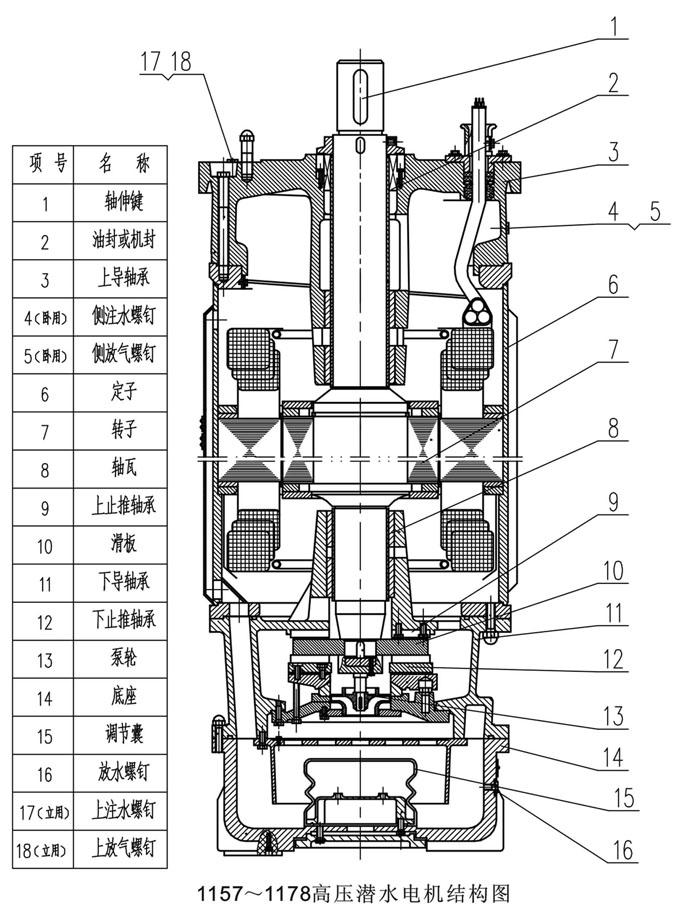 概述 1142-1178系列井用高壓潛水電動(dòng)機(jī)是我公司在引進(jìn)國(guó)際技術(shù)的基礎(chǔ)上開發(fā)研制的產(chǎn)品系。該潛水電動(dòng)機(jī)與潛水泵組成潛水電泵,長(zhǎng)期潛入水中工作,主要用于在深井中驅(qū)動(dòng)潛水泵提取地下水,礦坑井下排水、電廠供水、鋼廠供水、農(nóng)業(yè)大型排灌。本系列產(chǎn)品壽命長(zhǎng),易于維護(hù),是目前最理想的提水設(shè)備。 型號(hào)說明