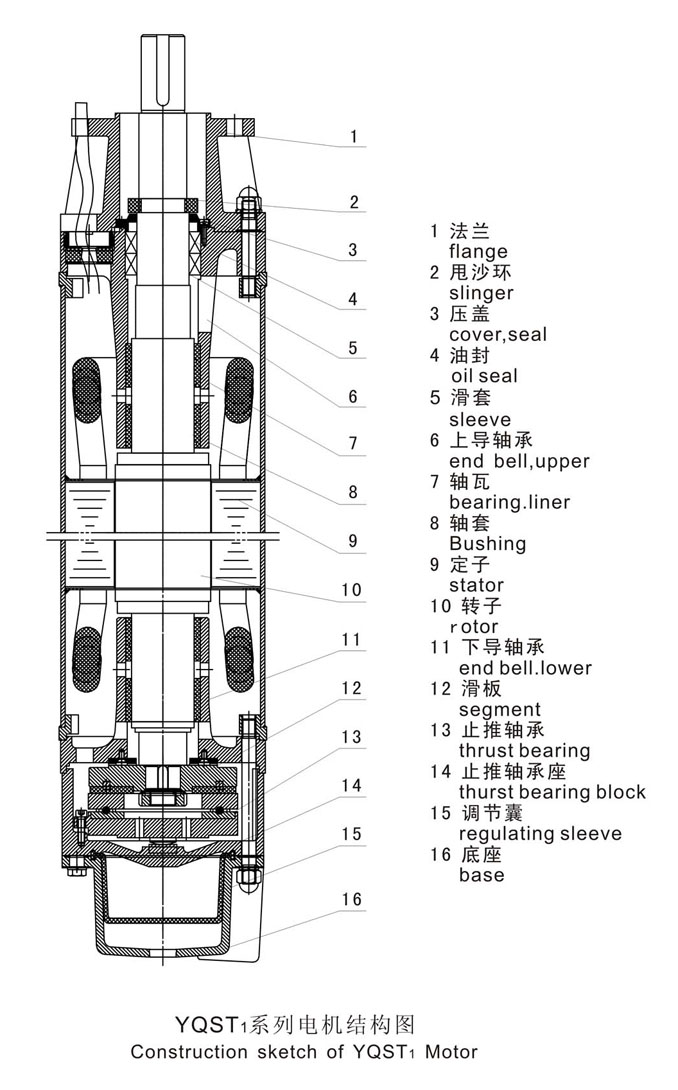 YQST系列大容量潛水三相異步電動機是應(yīng)國際市場需要,在小井徑中發(fā)展大容量電機而專門開發(fā)的一種新型潛水電機,他特別適用于高揚程潛水泵配套提取地下水,為城市工礦企業(yè)、農(nóng)業(yè)灌溉及居民生活提供生產(chǎn)和生活用水。本產(chǎn)品除具備一般井用潛水電機特點外,還具有單機容量大,力能指標(biāo)高,承受軸向力大,密封性能好等特點。為了適應(yīng)用花需要,電機機殼可采用不銹鋼材料,但需在合同中注明。