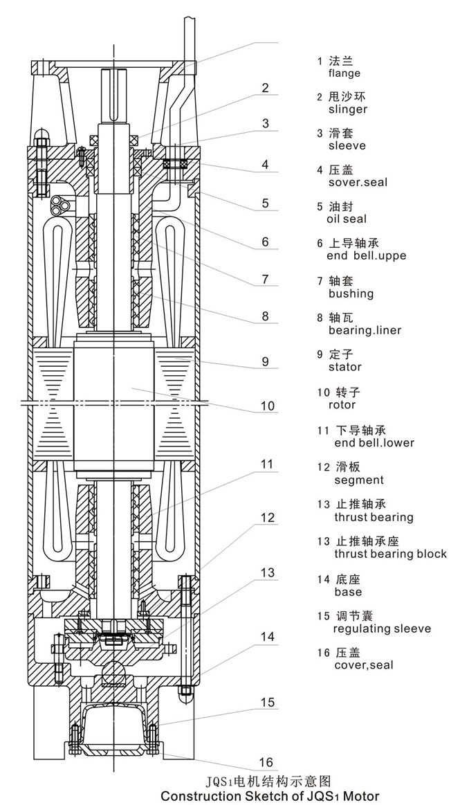 JQS  系列井用潛水三相異步電動(dòng)機(jī)為濕式充水密封型機(jī)構(gòu),主要用于8’’、 10’’深井中驅(qū)動(dòng)潛水泵提取地下水,為城市、工礦企業(yè)、農(nóng)田灌溉、牧場(chǎng)和居民生活提供生產(chǎn)和生活用水。JQS 1 系列電機(jī)設(shè)計(jì)合理,并經(jīng)多年生產(chǎn)實(shí)踐經(jīng)驗(yàn)屢加改進(jìn),具有機(jī)構(gòu)簡(jiǎn)單、噪音小、性能優(yōu)良、使用可靠、維修方便、運(yùn)用于水中、節(jié)約基礎(chǔ)投資等特點(diǎn)。